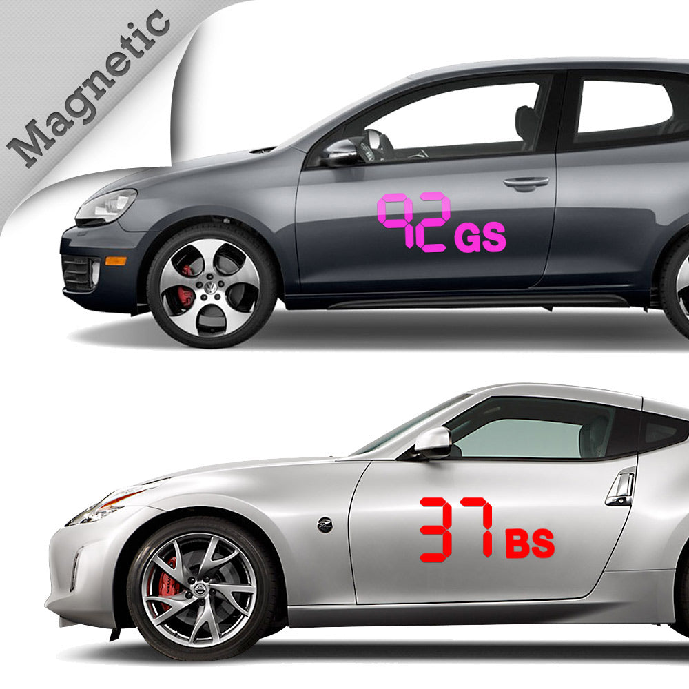 Simply select the color and class you'd like. You'll get a set of class letters for each side of your car, and supply enough number segments to make any number (7 segments per "number"), and deliver them to your door step.