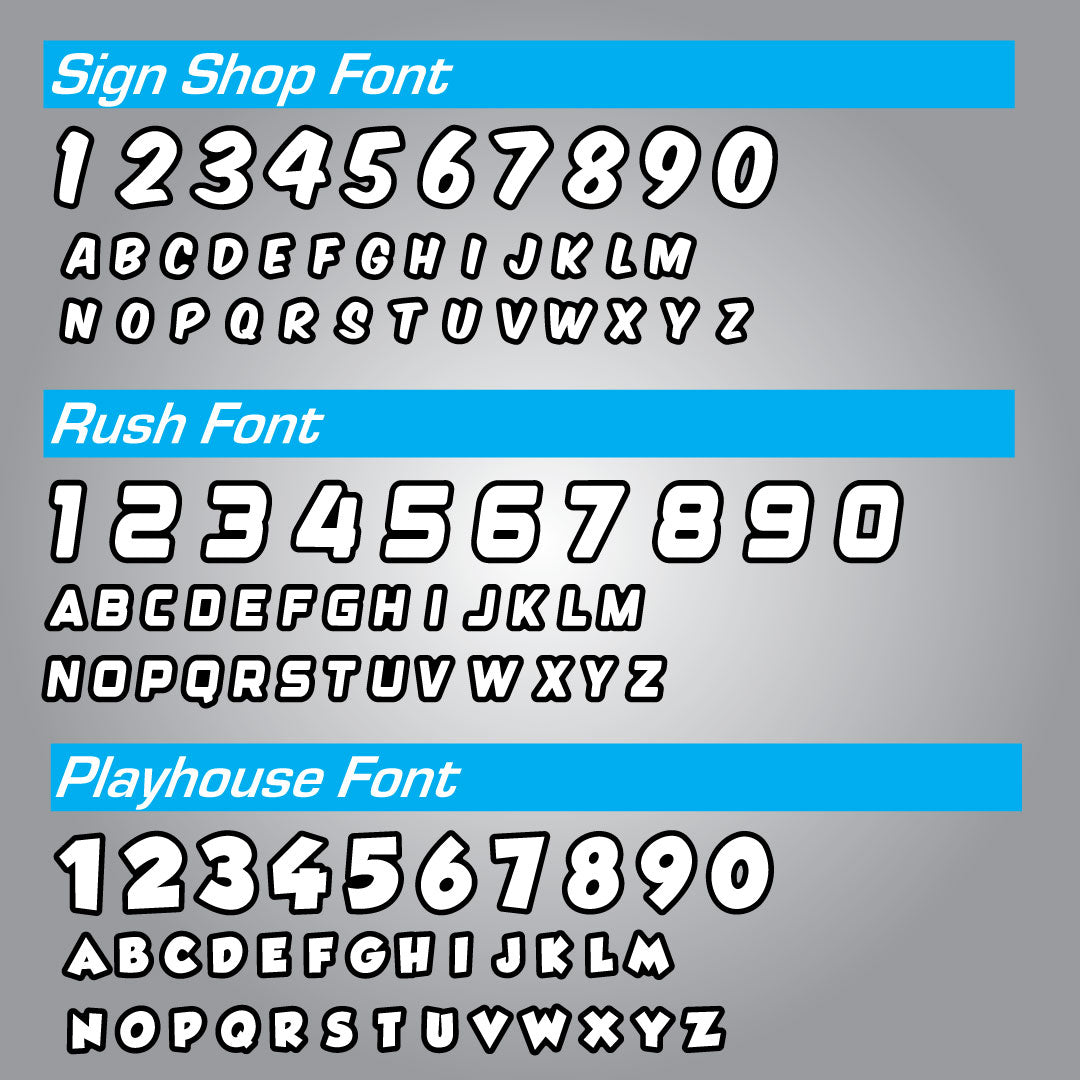 Simply select the quantity of numbers and class characters you'd like, as well as color and font. We'll custom make a set for each side of your car and deliver them to your door step.